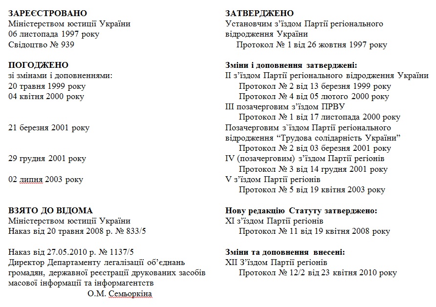 СТАТУС ПАРТІЇ РЕГІОНІВ